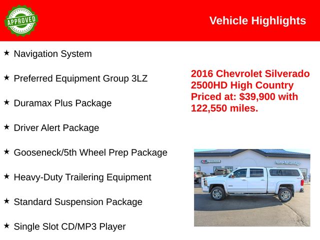 2016 Chevrolet Silverado 2500HD High Country Summit White 4WD Duramax 6.6L V8 Turbodiesel Allison 1000 6-Speed Automatic