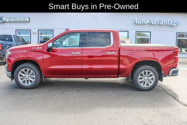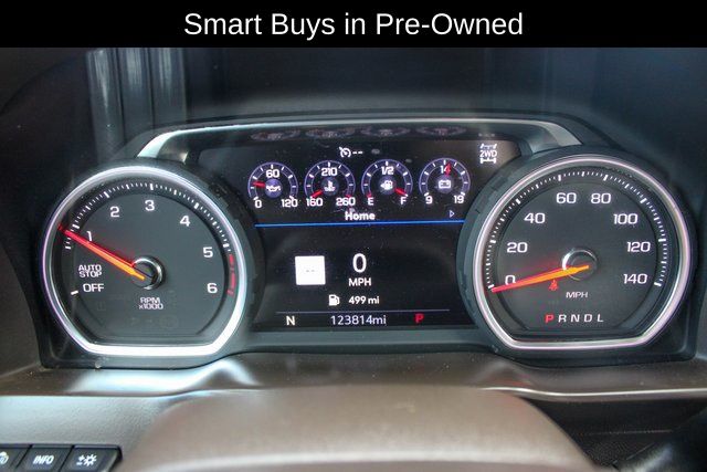 The 2020 Chevrolet Silverado 1500 LTZ is a 4WD model with a Cajun Red Tintcoat exterior and a Gideon/Very Dark Atmosphere leather interior. It has a 3.0L I6 engine and a 10-speed automatic transmission.