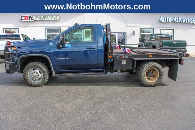 2021 Chevrolet Silverado 3500HD LT in Northsky Blue Metallic is a heavy-duty workhorse designed for maximum capability. This 4WD model features the powerful Duramax 6.6L Turbo-Diesel V8 engine and a smooth-shifting Allison 10-Speed Automatic Transmission. This particular model is a Regular Cab Dual Rear Wheel (DRW) configuration.