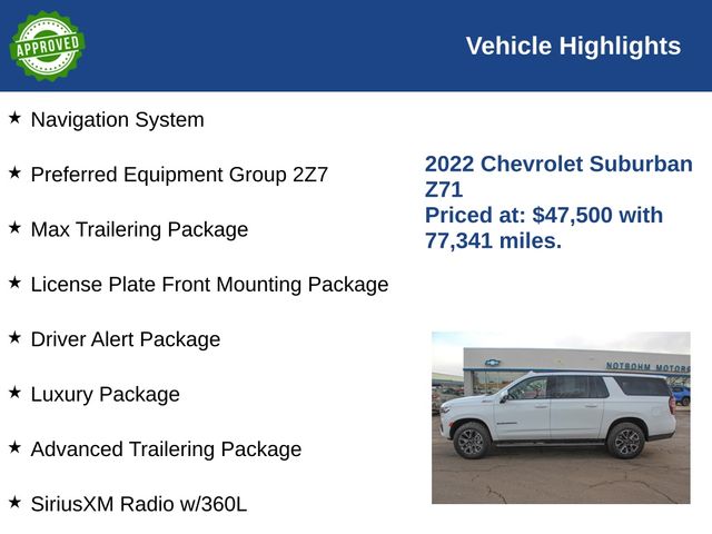 Highlighted by its impressive list of enhancements, this Suburban Z71 offers: