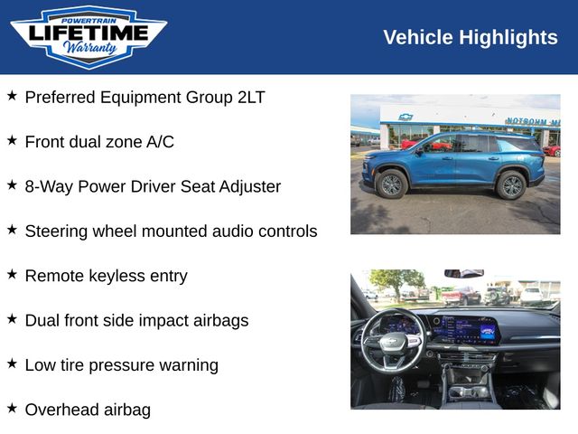 Discover the exceptional 2025 Chevrolet Traverse LT 2LT, a versatile and well-equipped SUV that's ready to elevate your driving experience. With its striking blue exterior, this Traverse offers a commanding presence on the road, while its spacious and thoughtfully designed interior provides the comfort and convenience you deserve.