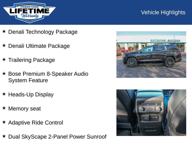Technology & Connectivity: The Acadia is equipped with an 8-inch diagonal color touchscreen infotainment system with navigation and voice-activated technology. It supports wireless Apple CarPlay and wireless Android Auto for compatible phones. The vehicle also has a Wi-Fi hotspot and is OnStar capable.
