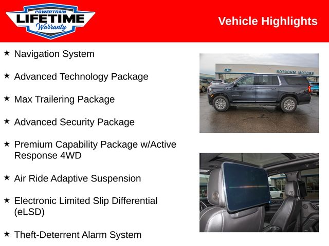 Designed to handle your every need, this Yukon XL Denali also boasts the Advanced Security Package, Advanced Technology Package, Max Trailering Package, and Premium Capability Package with Active Response 4WD, ensuring exceptional capability and confidence on the road.